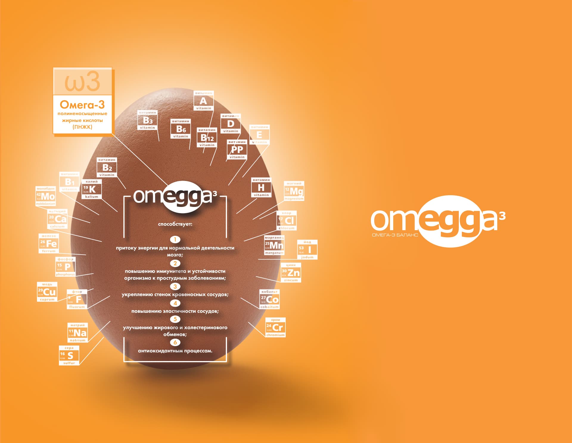 Название OMEGGA родилось из комбинации слов omega и egg. Мы добавили в слово «omega» лишнюю букву «g», чтобы внутри появилось «egg» — английское «яйцо». Так название стало и информативным, и запоминающимся: оно говорит о составе и напрямую связывает продукт с категорией.