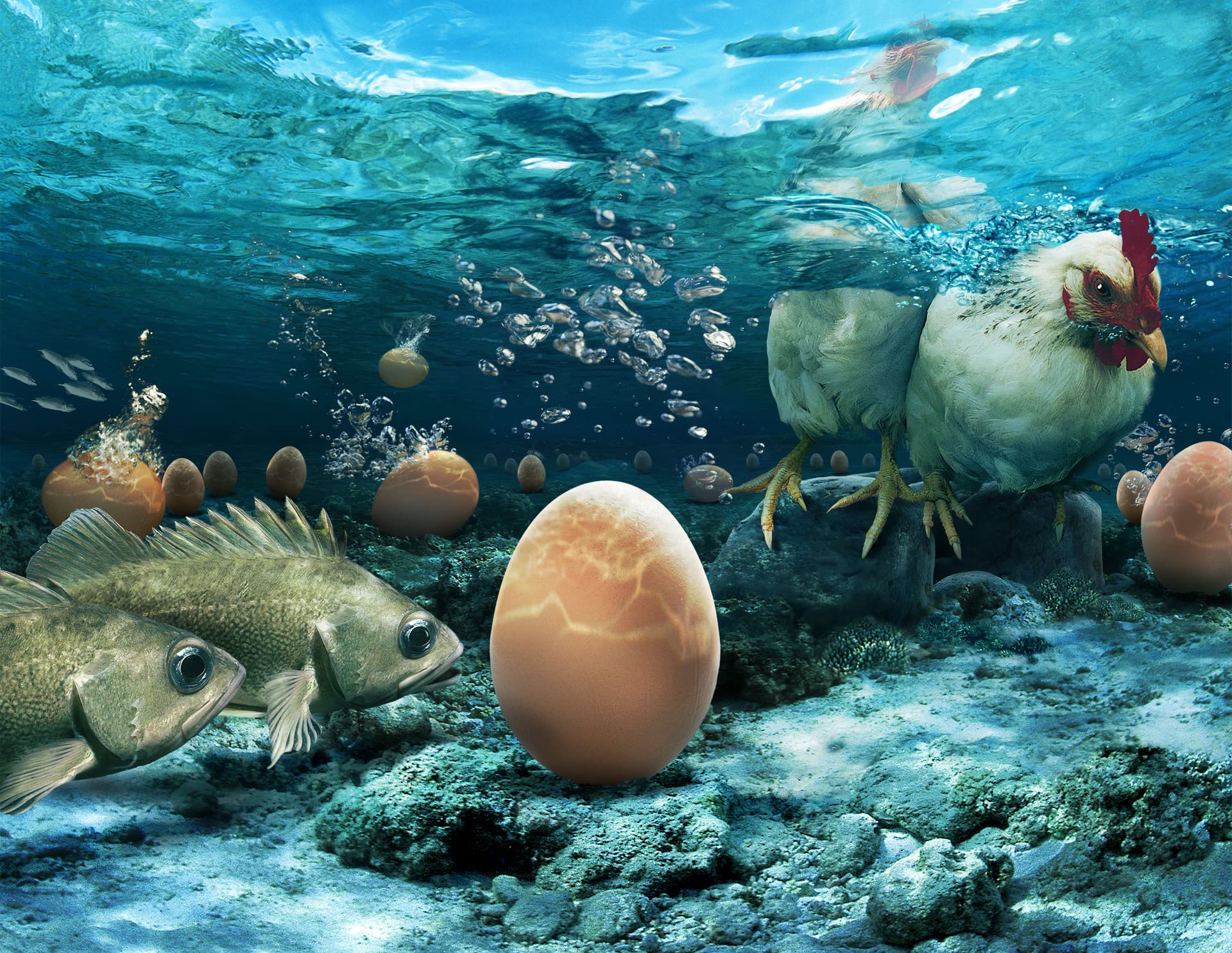 Для продвижения мы разработали инфографику и рекламные материалы, объясняющие пользу Омега-3. Яйца OMEGGA содержат до 600 мг эссенциальных жирных кислот — это альтернатива рыбе для тех, кто выбирает здоровое питание. На основе этой идеи мы создали визуальные решения: от инфографики с витаминами до коллажей и постеров, где яйца соседствуют с подводным миром.